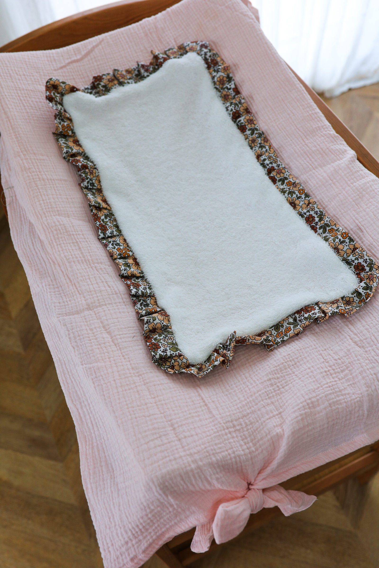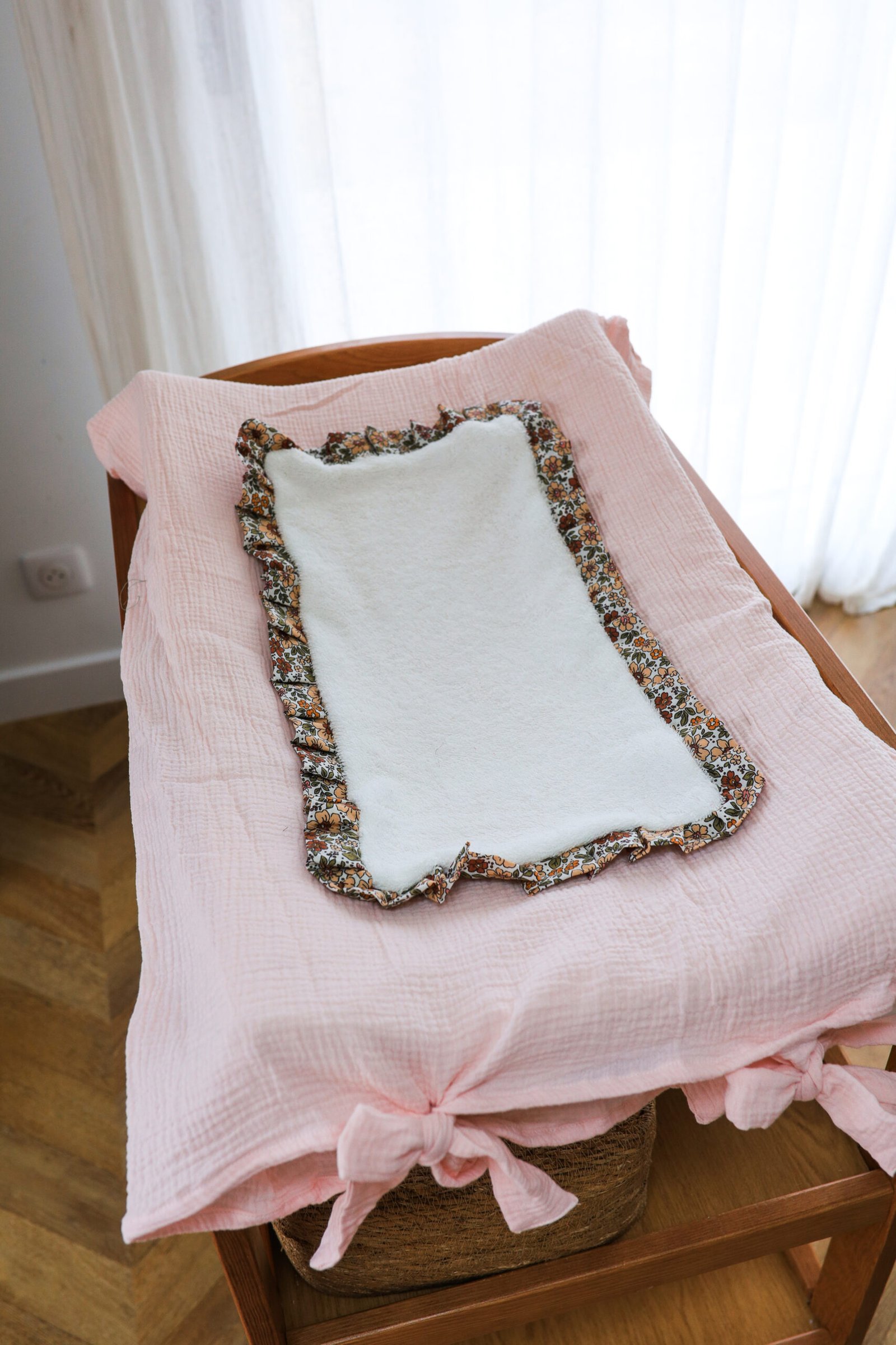 Housse matelas à langer froufrou rose/ Giulia